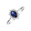 Tento prsten z 14kt bílého zlata s diamanty a safírem je jako věčný příslib štěstí. Jeho jemný design a třpyt diamantů jsou jako jiskřičky na nebi, které září jen pro vás. Vaše šťastná hvězda, která zůstane navždy. Šperk je součástí kolekce Diana.