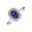 Tento prsten z 14kt bílého zlata osazený diamanty a tanzanitem je jako záhadný večerní příběh plný tajemství a kouzla. Jeho jedinečný design je symbolem vnitřní síly a nekončící elegance. Šperk je součástí kolekce Diana.