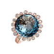 Elegantní prsten z 18kt růžového zlata, zdobený diamanty a topazem sky - pro ty, kteří si chtějí dopřát opravdový klenot plný vznešenosti. Šperk je součástí kolekce Fantasy.