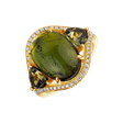 Tento prsten z 18kt žlutého zlata s diamanty a turmalínem green je jako dílo umění. Každý kámen, pečlivě vybraný a vsazený, vypráví příběh radosti, inspirace a neopakovatelné krásy. Šperk je součástí kolekce Blossoms.