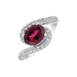 Romantický prsten z 18kt bílého zlata s diamanty a turmalínem purpurovým září svým vlastním jedinečným světlem. Šperk je součástí kolekce Fantasy.