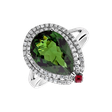 Prsten z 18kt bílého zlata s diamantem, turmalínem green a rubínem, který se může pyšnit svou dokonalostí a pečlivě vybranými kameny, je symbolickou pečetí věčné elegance. Šperk je součástí kolekce Diana.