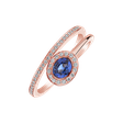 Obklopený aurou luxusu, tento prsten z 18kt růžového zlata, zdobený diamanty a safírem, je skvostem, který odráží hloubku a sofistikovanost. Jeho srdce je jako okno do světa nekonečné elegance. Šperk je součástí kolekce Luxury Classic.