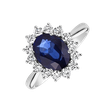 Prsten 14kt bílého zlata s diamanty a safírem, symbol výjimečnosti a elegance. Jeho záře je jako slunce, které osvětluje cestu k úspěchu a splněným snům. Šperk je součástí kolekce Diana.