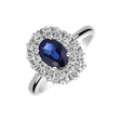 Oslňte svět tímto prstenem z 14kt bílého zlata s diamanty a safírem, který září elegancí a krásou. Je nezapomenutelný a elegantní, stejně jako vy sami. Šperk je součástí kolekce Diana.