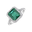Obklopený třpytem nejčistších diamantů a smaragdem, tento prsten z 14kt bílého zlata je odvážným vyjádřením elegance a přírodní krásy, který odolá věčnosti. Šperk je součástí kolekce Diana.