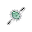 Odvaha je zhmotněna v tomto prstenu z 14kt bílého zlata s diamanty a srdce hřejícím smaragdem, který je určen silným osobnostem, které oslavují svůj úspěch se stejnou vážností, s jakou nosí své šperky. Šperk je součástí kolekce Diana.
