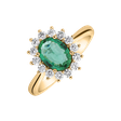 Prsten 14kt žlutého zlata s diamanty a smaragdem, který je určen pro náročné milovníky luxusu, je svědectvím odvahy a nesmírného smyslu pro krásu ukryté ve světle jednoduchosti. Šperk je součástí kolekce Diana.