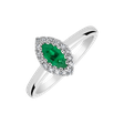 Prsten z 18kt bílého zlata s diamanty, jehož krásu zdůrazňuje nádherný smaragd, je symbolem elegance a nadčasové krásy. Jeho rafinovaný design a zářivost smaragdu přináší pocit luxusu a výjimečnosti. Šperk je součástí kolekce Diana.
