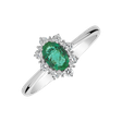Tento prsten z 14kt bílého zlata s diamanty a smaragdem je jako věčný příslib štěstí. Jeho jemný design a třpyt diamantů jsou jako jiskřičky na nebi, které září jen pro vás. Vaše šťastná hvězda, která zůstane navždy. Šperk je součástí kolekce Diana.