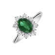 Prsten z 14kt bílého zlata s diamanty a smaragdem, který je určen pro náročné milovníky luxusu, je svědectvím odvahy a nesmírného smyslu pro krásu ukryté ve světle jednoduchosti. Šperk je součástí kolekce Diana.