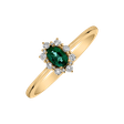 Prsten 14kt žluté zlato s diamanty a smaragdem je vyjádřením jak romance, tak i síly. Tento prsten spojuje krásu diamantů s jemným leskem smaragdu, vytvářejíce nepopsaný papír pro nekonečný příběh lásky a vášně. Šperk je součástí kolekce Diana.