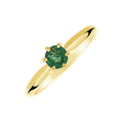 Tento prsten z 14kt žlutého zlata se smaragdem je elegantní, vkusný a vyroben s nejvyšší pečlivostí. Jeho nádherná kombinace barev okouzluje všechny milovníky drahokamů, kteří si váží jemných detailů a díla přírody. Šperk je součástí kolekce Classic First.