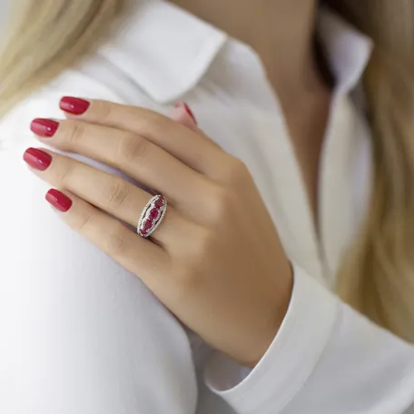 Prsten s diamanty a rhodolitem Bethy